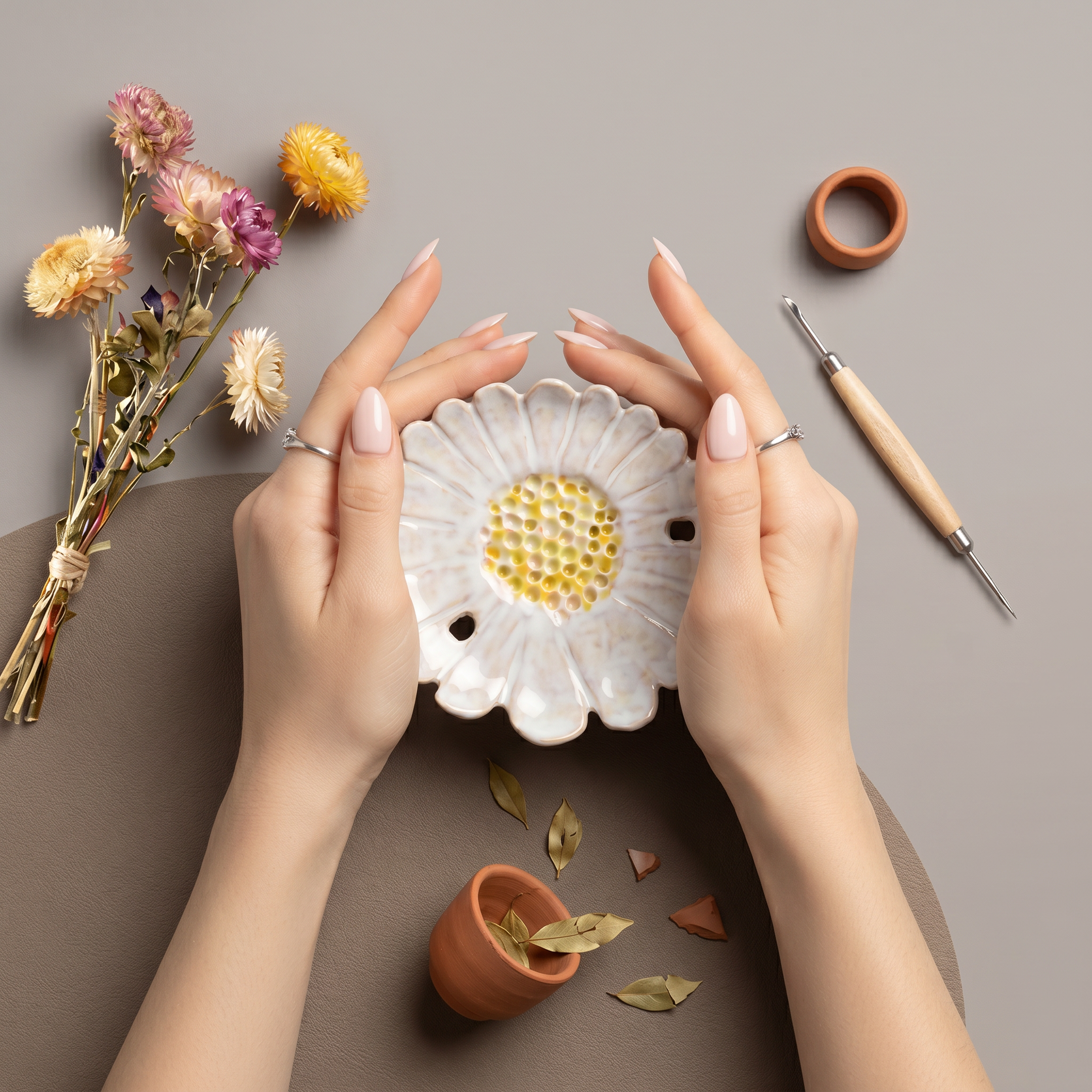 Façonnée à la main dans notre studio bruxellois. Une pièce unique en argile émaillée, conçue pour vos kokedama.